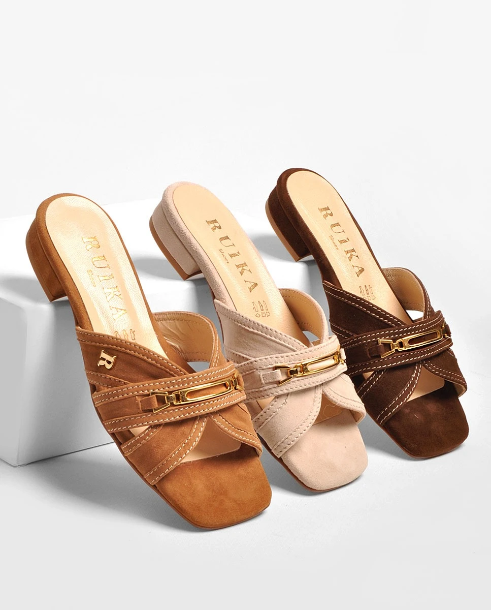 Chinelo em camurça.