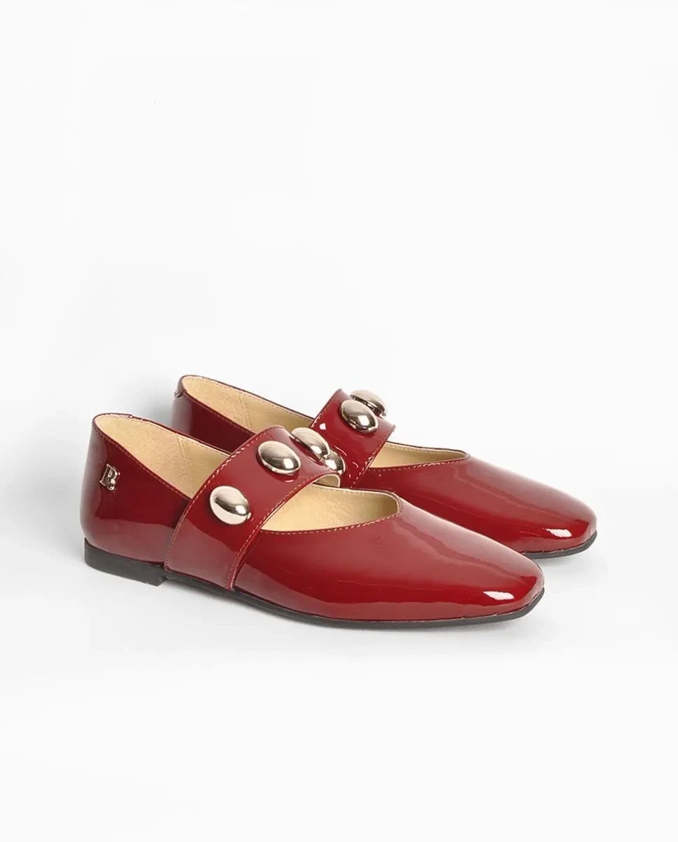 Sapato raso em pele envernizada, cor bordo