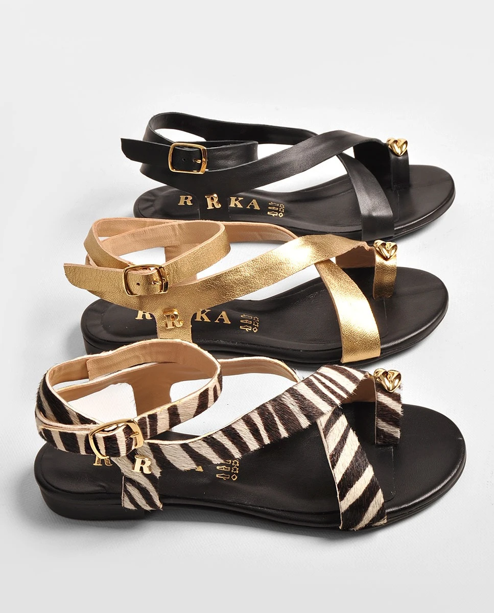 Sandália em pele dourada.